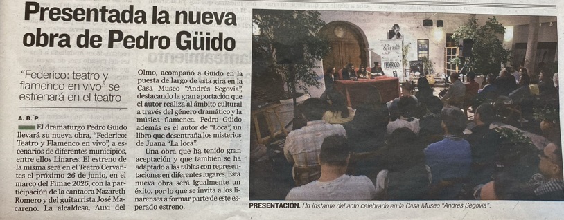 https://www.linares28.es/2026/03/22/pedro-guido-presenta-en-linares-la-gira-de-su-nuevo-espectaculo-federico-teatro-y-flamenco-en-vivo/: Prensa